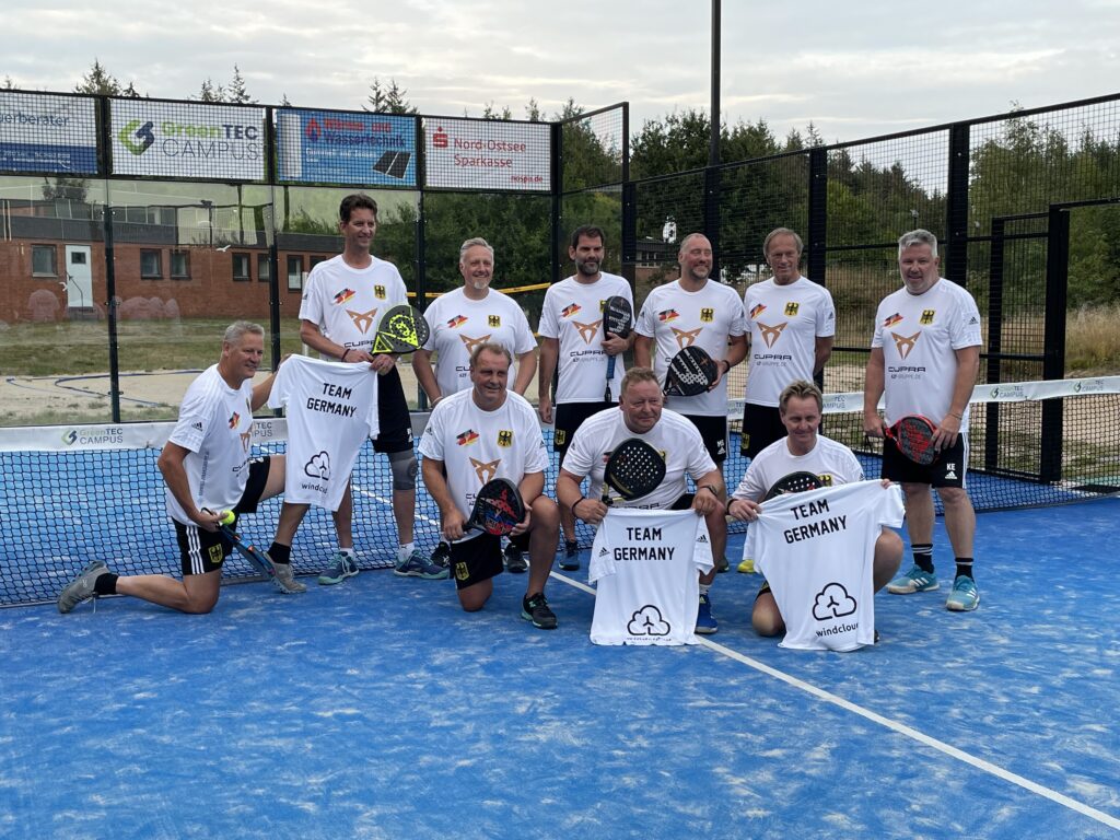 Das deutsche Ü45-Nationalteam traf sich vor den diesjĂ€hrigen SixNations Masters auf dem GreenTEC Campus, um eine Rangliste auszuspielen und die frisch bedruckten National-Trikots in Empfang zu nehmen. Die 10 Deutschland-Vertreter aus 5 deutschen Padel-Clubs reisen am kommenden Wochenende zum internationalen Turnier nach Helsinki.