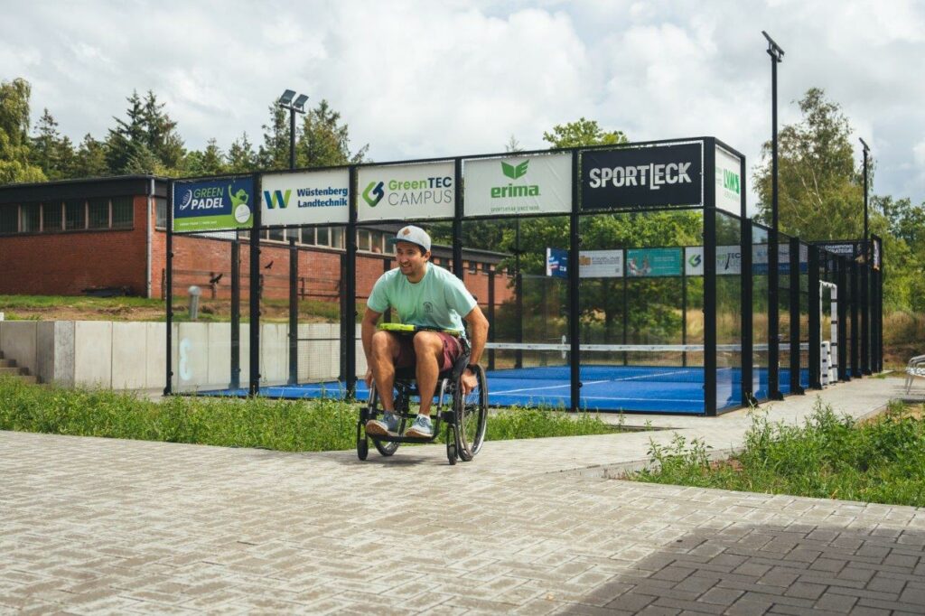Auf der GreenTEC Campus Padel – Anlage gibt es 3 Außenplätze mit Flutlicht und sanitäre Anlagen, alles ist barrierefrei. Parkplätze gibt es an der Mensa, drei Behindertenparkplätze gibt es bei Platz 3.